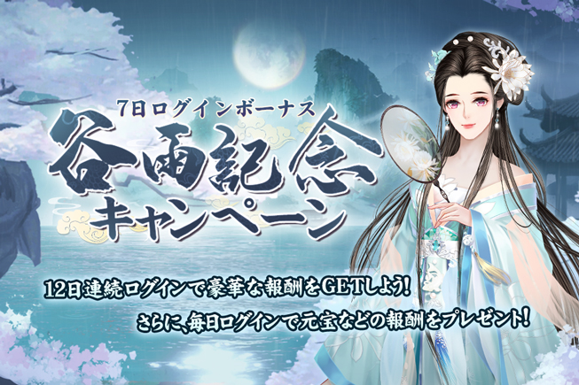谷雨記念キャンペーン中、12日ログインボーナスをご用意しています。